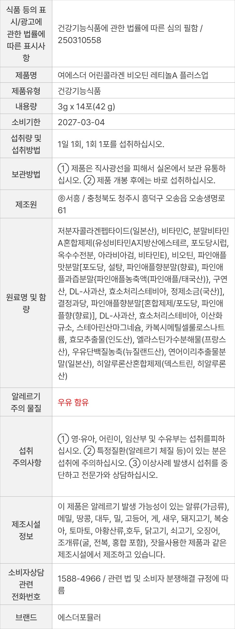 여에스더 어린콜라겐 비오틴 레티놀A 플러스업 |