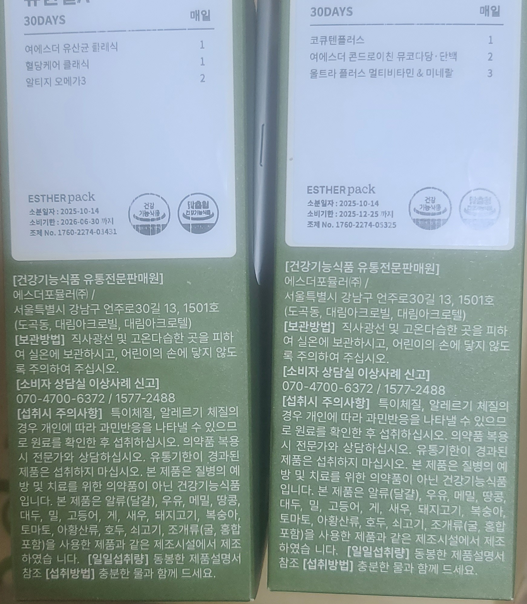 소비자안전을 위한 주의사항 | ※ 이상 사례 신고는 1577-2488 ※ 본 제품은 질병의 예방 및 치료를 위한 의약품이 아닙니다. ※ 본 제품은 공정거래위원회고시 소비자분쟁해결기준에 의거 교환 또는 보상을 받을 수 있습니다. ※ 본 제품은 알류(가금류), 메밀, 땅콩, 밀, 고등어, 게, 새우, 돼지고기, 복숭아, 아황산류, 호두, 닭고기, 쇠고기, 오징어, 조개류(굴, 전복, 홍합 포함), 잣을 사용한 제품과 같은 제조시설에서 제조하였습니다. |