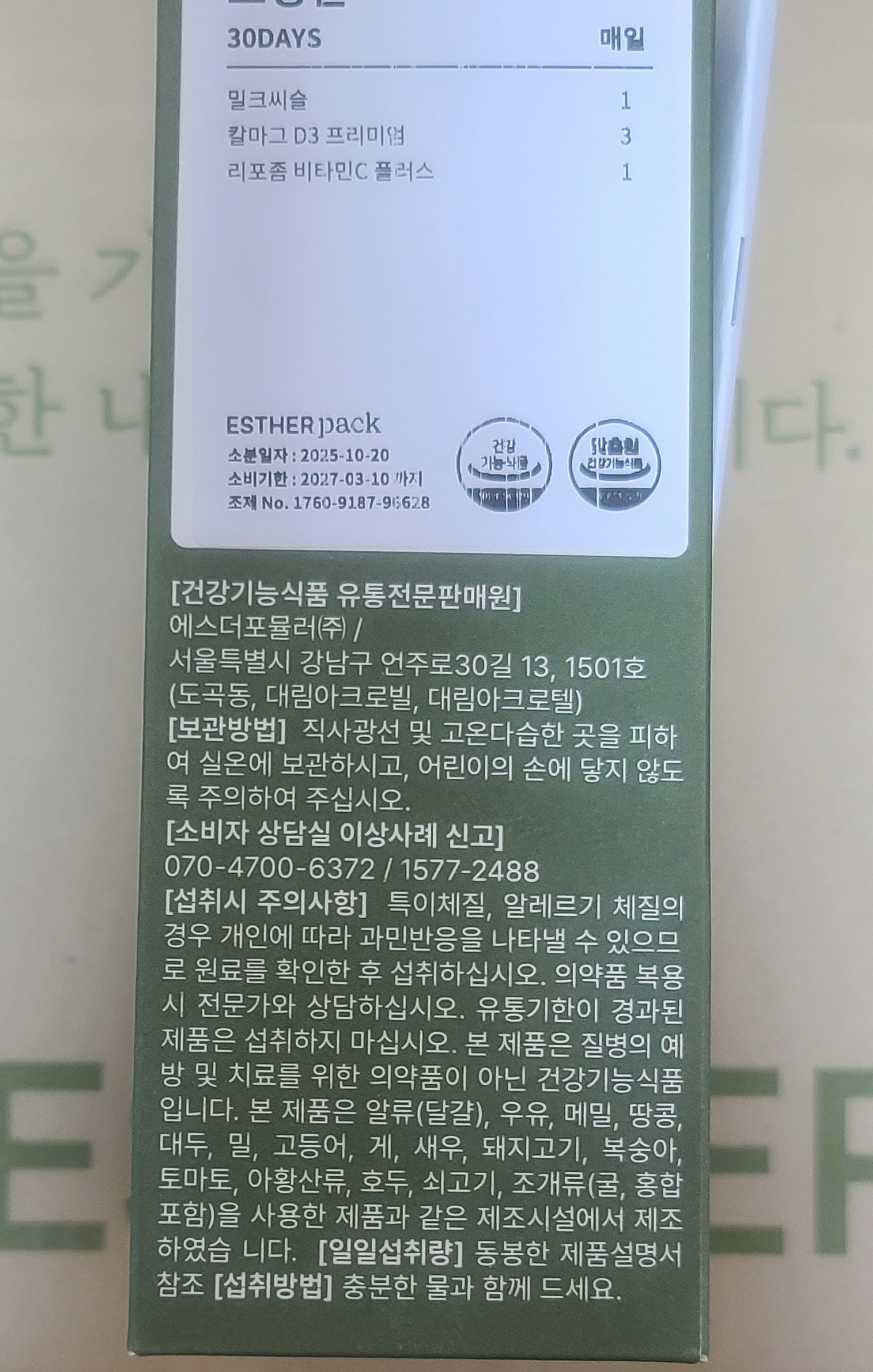 소비자안전을 위한 주의사항 | ※ 이상 사례 신고는 1577-2488 ※ 본 제품은 질병의 예방 및 치료를 위한 의약품이 아닙니다. ※ 본 제품은 공정거래위원회고시 소비자분쟁해결기준에 의거 보상 받을 수 있습니다. ※ 본 제품은 알류(가금류), 메밀, 땅콩, 대두, 밀, 고등어, 게, 새우, 돼지고기, 복숭아, 토마토, 아황산류, 호두, 닭고기, 쇠고기, 오징어, 조개류(굴, 전복, 홍합 포함), 잣을 사용한 제품과 같은 제조시설에서 제조하였습니다. |