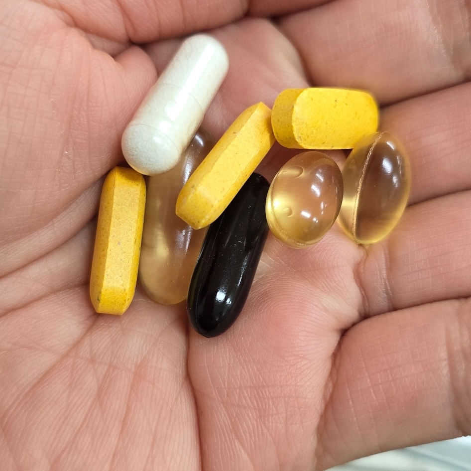 | 원료명 및 함량 | 비타민C, 산화마그네슘, d-α 토코페릴호박산, 비타민B1염산염, 판토텐산칼슘, 비타민B6염산염, 니코틴산아미드, 비타민B2, 건조효모(크롬함유), 건조효모(몰리브덴함유), 비타민B12혼합제제[제이인산칼슘, 비타민B12], 건조효모(몰리브덴함유), 산화아연, 비타민A혼합제제[포도당시럽, 옥수수전분, 아라비아검, 유성비타민A지방산에스테르, 비타민E], 아셀렌산나트륨혼합제제[제이인산칼슘, 아셀렌산나트륨], 황산망간, 비타민D3혼합제제[아라비아검, 설탕, 옥수수전분, 가공유지, 이산화규소, 비타민D3, 비타민E], 글루콘산동, 비오틴혼합제제[제이인산칼슘, 비오틴], 비타민K1혼합제제[아라비아검, 비타민K1, 설탕], 요오드칼륨, 엽산, 결정셀룰로스, 보리추출물분말, 히드록시프로필메틸셀룰로스, 글리세린, 스테아린산마그네슘, 가교카복시메틸셀룰로스나트륨, 이산화규소, 이산화티타늄(착색료), 치자황색소, 흑마늘추출물, 베타카로틴혼합제제[덱스트린, 아라비아검, 설탕, 올리브유, 두나리엘라오일, β-카로틴(착색료), L-아스코빌팔미테이트(산화방지제), 구연산, 비타민E, 이산화규소], L-아스파트산, 효소처리루틴, 샐러리추출물, 적양배추추출물, 포도추출분말, 홍국색소(착색료), 카카오색소(착색료) ※ 대두 함유 |