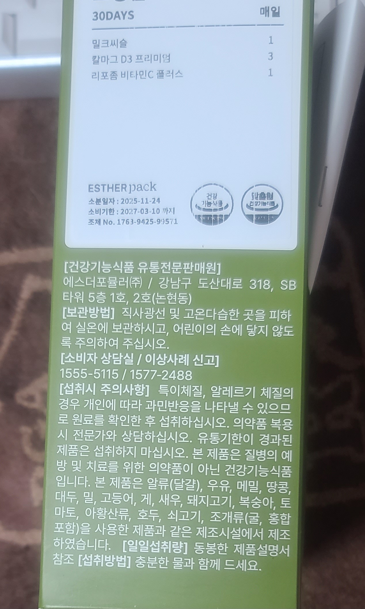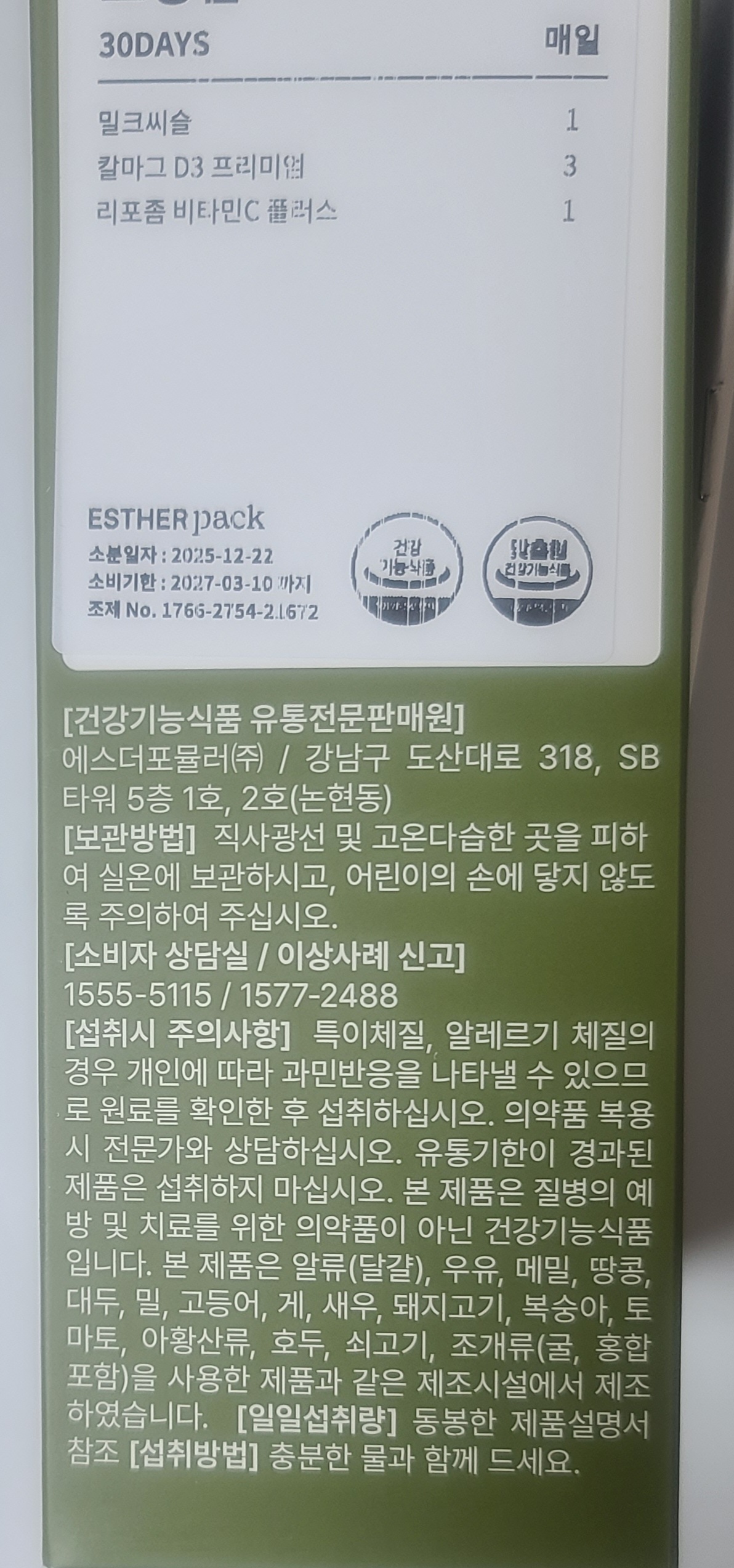 | 유통전문판매원 | 에스더포뮬러㈜ / 서울특별시 강남구 도산대로 318, SB타워 5층 1호,2호 (논현동) |